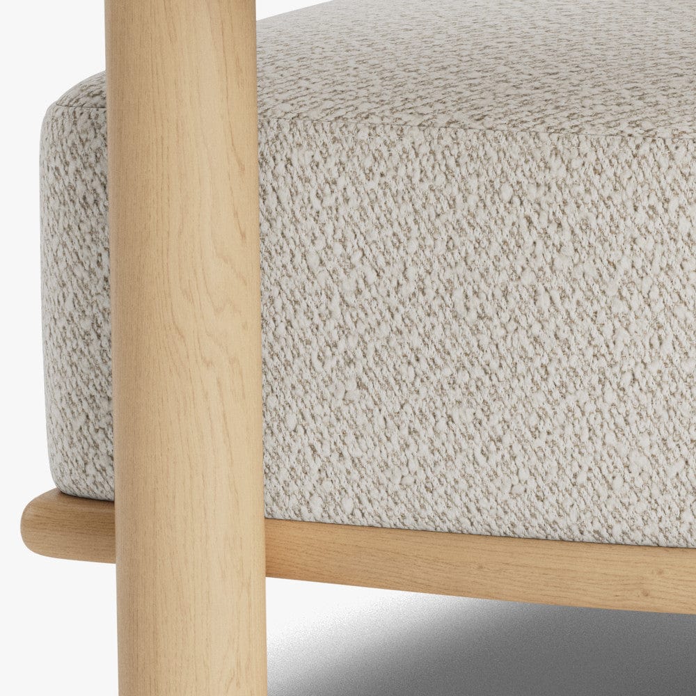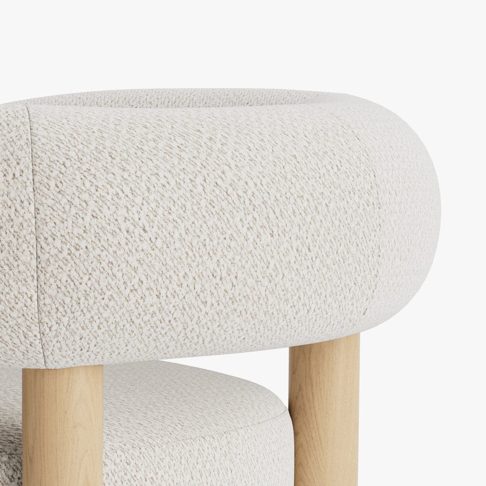 The Adut Chair in soft boucle is both chic and versatile, with wooden legs and plush support. Its textured fabric adds a refined, modern touch to any room.