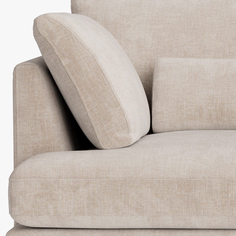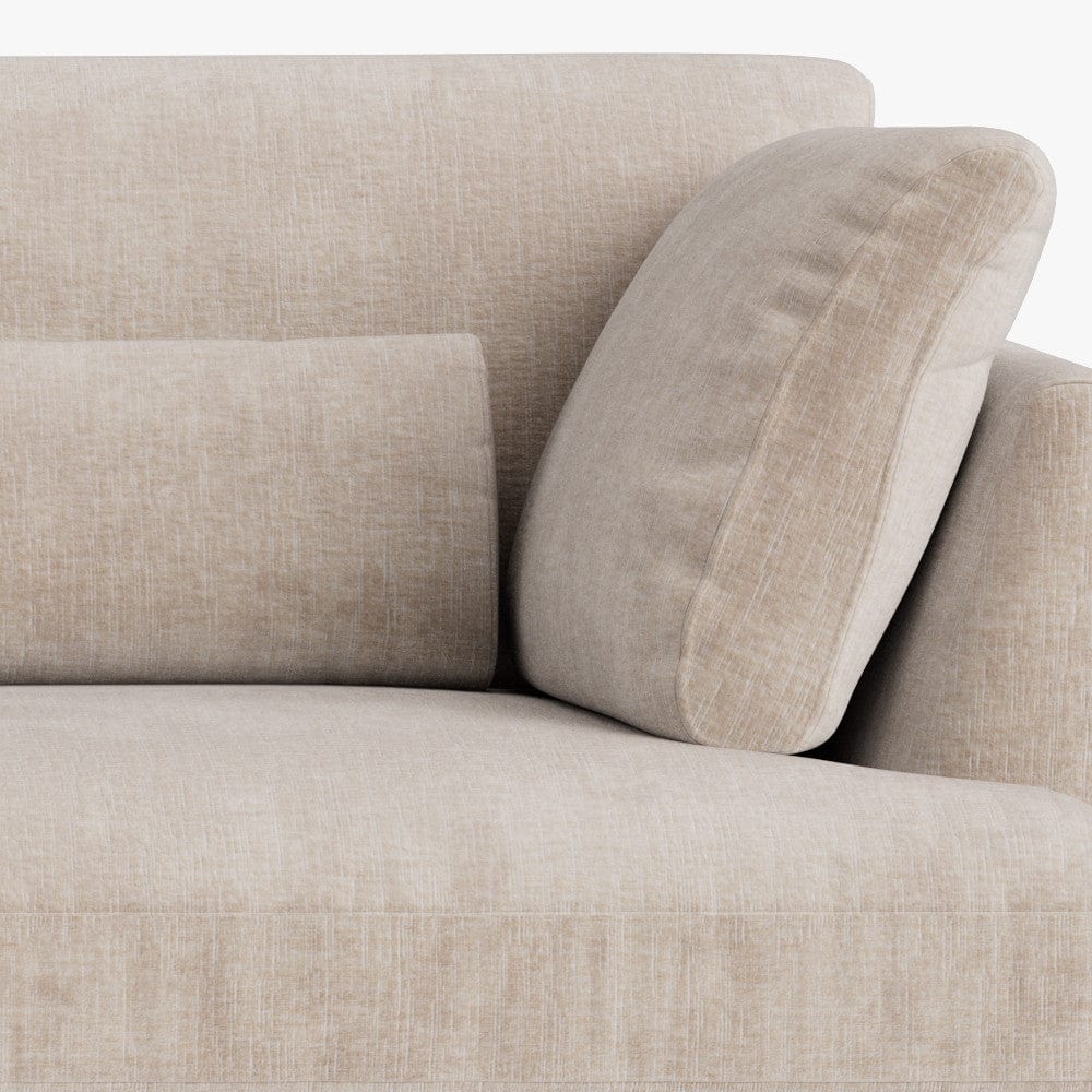 A modern sofa shape with softly padded angled arms for a relaxed yet refined look. Designed for everyday lounging with an elegant contemporary edge.