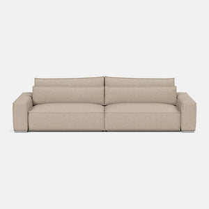 A low grounded base paired with sleek gunmetal feet for a modern understated look. Gives the sofa a stylish floating feel while keeping it sturdy and elegant.
