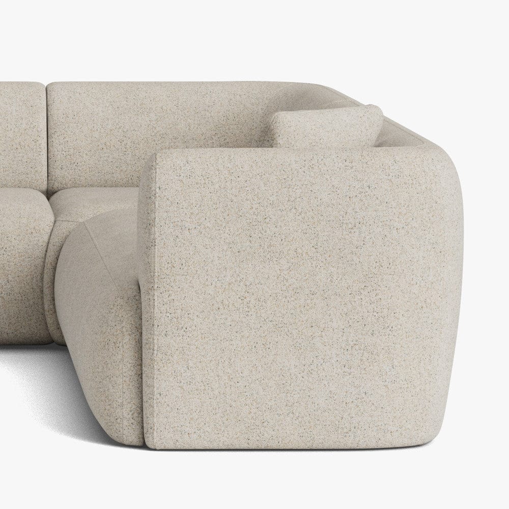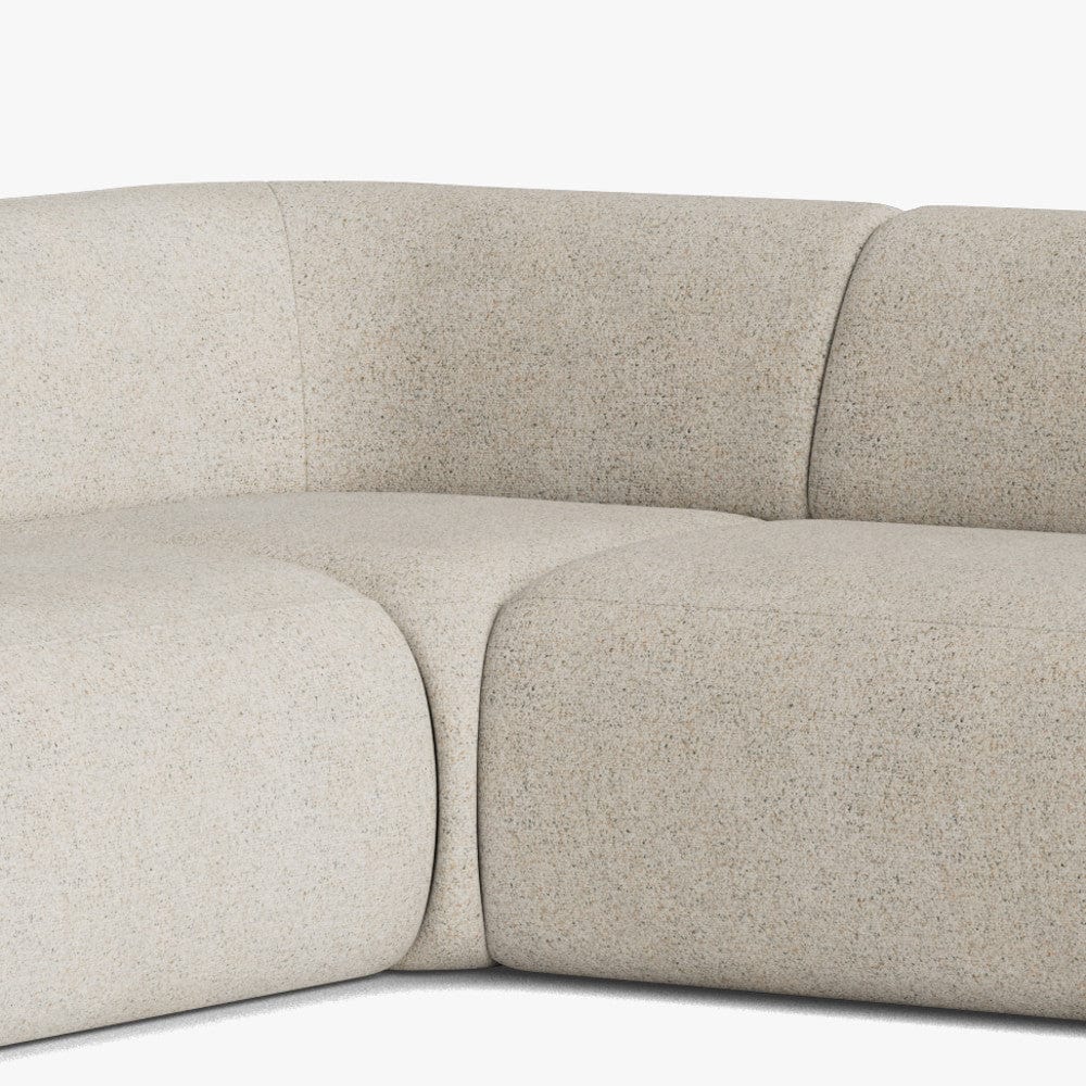 Meet Hoxton, crafted for modern living. With its sleek silhouette, fixed seat and back cushions, and on-trend curved corners, this sofa makes a bold statement in any space. Upholstered in our new 'Dusty Cream' boucle fabric and featuring multi-coloured yarns for a rich, textured finish—Hoxton combines style with substance. The firm seat comfort and rounded footstool complete this contemporary look.