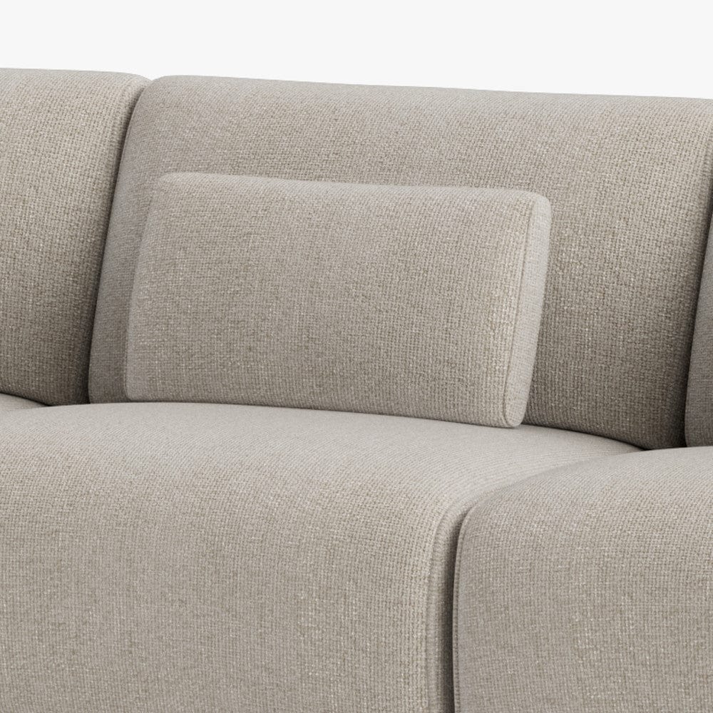 Kate merges modern elegance with comfort in a modular design. Its wide padded arms, hidden legs, and plush chenille fabric create a luxurious, airy feel that adapts beautifully to any room.